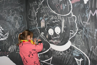 De expo in het fort bestaat vooral uit grote prenten uit het boek ” Spiekpietje in nood”.